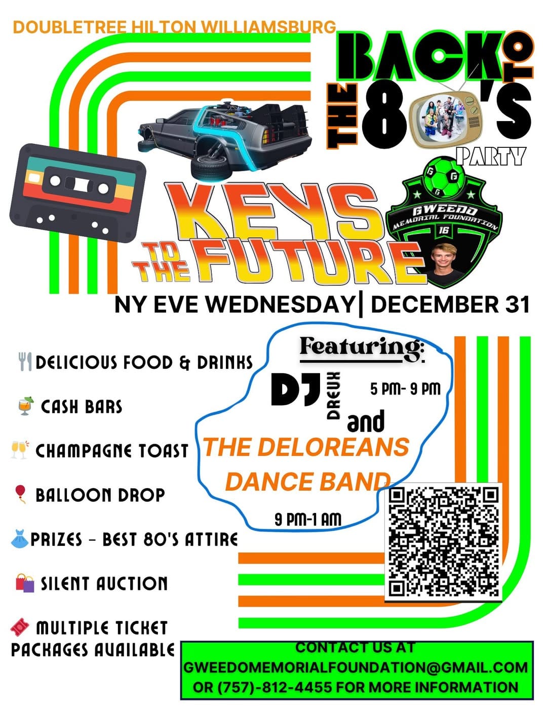 Come join us for a night to remember at our electrifying New Years Eve Dance Party! We are thrilled to announce our 80s-themed NYE fundraiser with music, food, prizes & more — all to support safer roads in Conner’s honor! #gweedomemorialfoundation